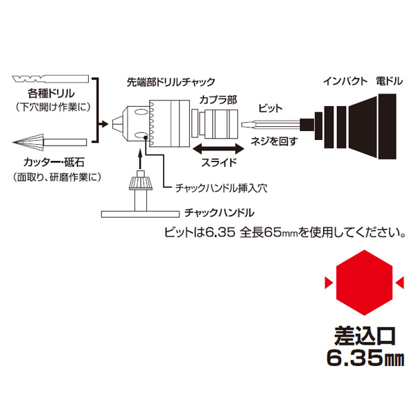 ●ビットを電ドルにつけたままでドリルチャックが使用できます。