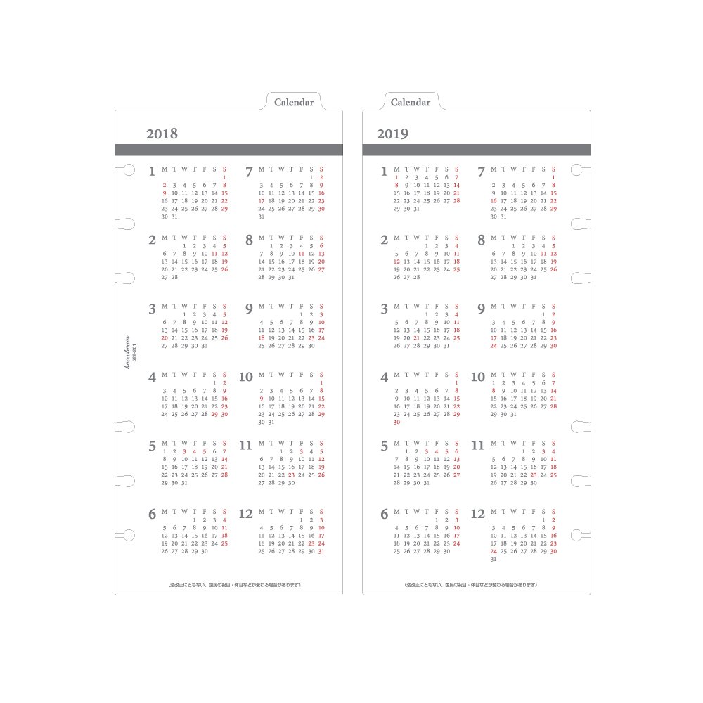 【Features】 · Narrow size · 2018.1 ~ 2019.12 · Starting on Monday · Ring hole with easy-to-remove cut · Index included · PP resin