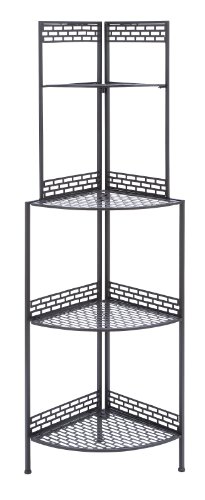 Features: Perfectly fits in the angle between walls in any room Offers a simple shelf arrangement Flaunting a charming, minimalist design Ideal for displaying ornate potted plants Adding a touch of elegance to your otherwise classy settings, this sturdy, attractively designed metal corner rack is perfect for your decor. The beautiful design of this accent is carefully designed to fit in the angle between walls in any room. This corner rack can be easily incorporated in different decor styles and offers a delightful look with minimalist design. Created to finesse with high grade metal, this corner rack imparts unmatched durability and ensures reliable performance. The slick black finish on the shelves of this corner rack accentuates the overall appearance and the charm. This rack is perfect for displaying ornate potted plants or various other display decor pieces and memorabilia. It comes with following dimensions 18" W x 12" D x 56" H.