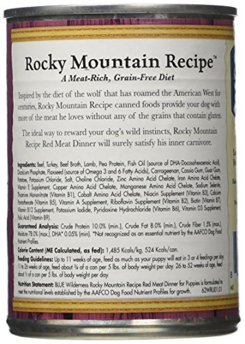 -. Binding : Misc. -. Brand : BLUE Wilderness -. Feature : Grain-free wet food just for puppy dogs / Made with real turkey and chicken / Potatoes, peas and fish oil -. Label : BLUE Wilderness -. Manufacturer : BLUE Wilderness -. PackageQuantity : 1 -. ProductGroup : Pet Products -. ProductTypeName : PET_SUPPLIES -. Publisher : BLUE Wilderness -. Studio : BLUE Wilderness -. Title : BLUE Wilderness High Protein Grain-Free Puppy Wet Dog Food