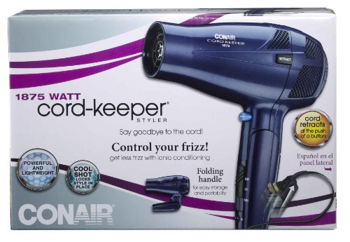 -. Title : Conair 1875 Watt Ionic Conditioning Cord-Keeper Folding Handle Hair Dryer