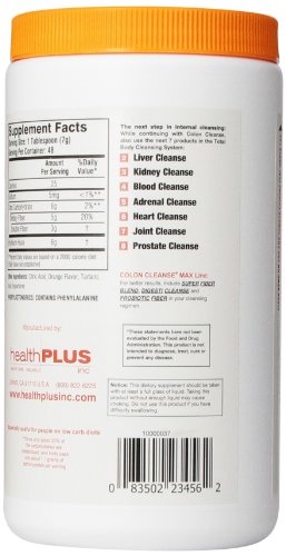 -. Binding : Health and Beauty -. Brand : Colon Cleanse -. Color : Parent -. IsAdultProduct : 0 -. Label : Colon Cleanse -. LegalDisclaimer : These statements have not been evaluated by the Food & Drug Administration. This products is not intended to diagnose, cure, mitigate, treat, or prevent any disease. -. Manufacturer : Colon Cleanse -. MPN : MF0008 -. PackageQuantity : 1 -. PartNumber : MF0008 -. ProductGroup : Health and Beauty -. ProductTypeName : HEALTH_PERSONAL_CARE -. Publisher : Colon Cleanse -. Studio : Colon Cleanse -. Title : Health Plus - Colon Cleanse The Original High Fiber