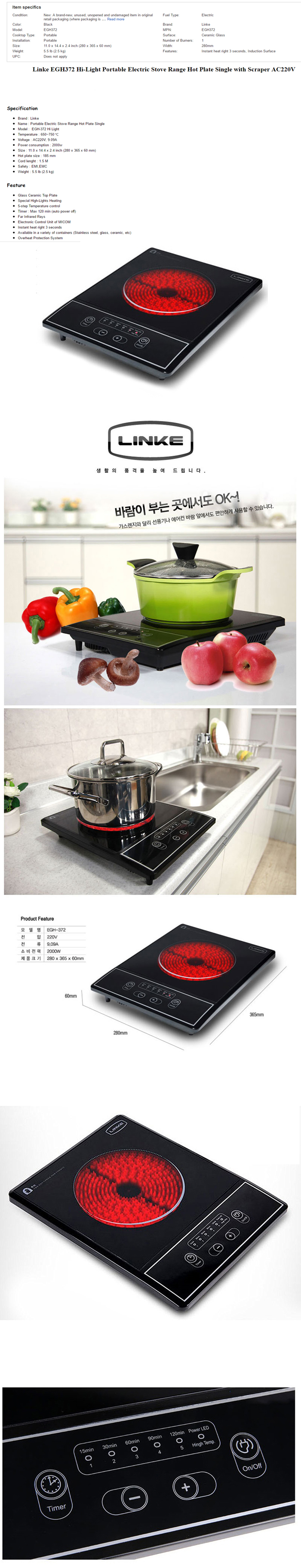 LINKE Hi-Light Portable Electric Stove Induction Range Hot Plate Single EGH-372 AC220V