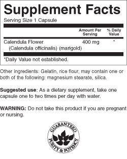 -. Binding : Health and Beauty -. Feature : Swanson Premium / Swanson Full Spectrum Calendula Flower (Marigold) 400 mg 60 Caps / Per GMP guidelines set forth by the FDA, most products are formulated for 24 months from the date of manufacture. Liquids and probiotics are formulated for 12 months. -. IsAdultProduct : 0 -. Label : Swanson Premium -. Manufacturer : Swanson Premium -. PackageQuantity : 1 -. ProductGroup : Health and Beauty -. ProductTypeName : HEALTH_PERSONAL_CARE -. Publisher : Swanson Premium -. Studio : Swanson Premium -. Title : Swanson Full Spectrum Calendula Flower (Marigold) 400 mg 60 Caps