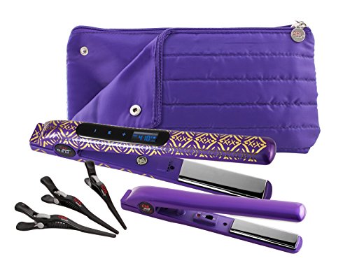 CHI Smart Gemz Volumizing Zironium Titanium 1 Inch Amethyst Metallic Foil Hairstyling Iron with 3/4 Inch Travel Iron, Hair Clips and Thermal Pouch