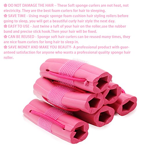 It consists of a rubber band, precise stick hook and sponge, not to hurt the hair. This hair curler roller can be used while sleeping, to save time.
