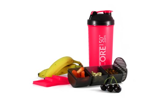 The Core150 system also ensures maximum hydration during the day and throughout your workout. The Core150 Shaker holds 35oz of water when centre compartments are removed allowing for a smoother shake when powder is inserted.