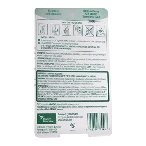 Studio : AiR WICK Publisher : AiR WICK Binding : Misc. Product Description Use with your favorite Air Wick® scented oil refill fragrances. Adjustable to control fragrance intensity. Material(s): Plastic Color(s): White Depth: 6 1/8 in Height: 6.3 in.Unit of Measure : Carton 0