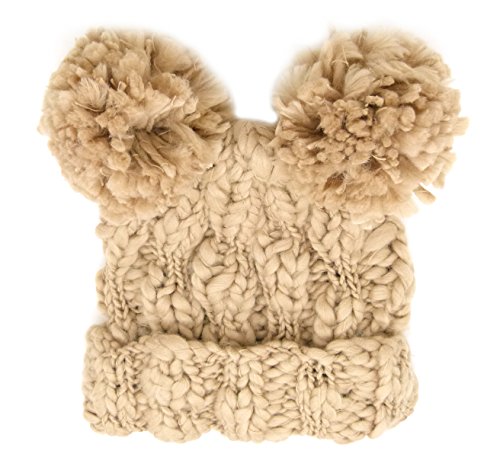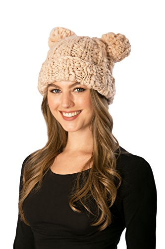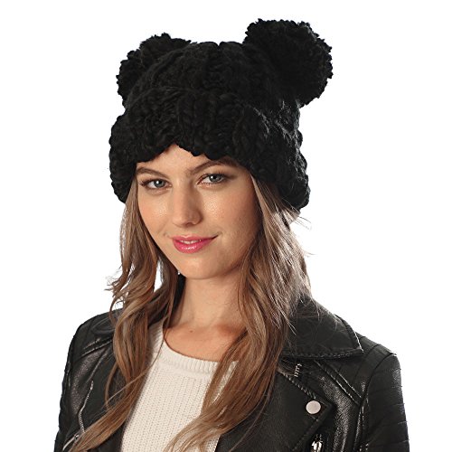 Women's Winter Trendy Warm knit Beanie Hat with Pom Pom Ears [100% Hand Made]