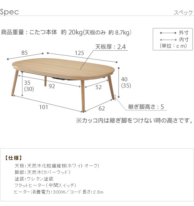 幅125x奥行85x高さ35/40cm(継脚5cm)