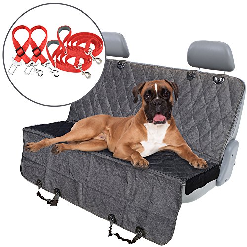 -. Feature : [ FREE EBOOK "DOG HEALTH 101" ] QUICK & EASY TO INSTALL - Universal back seat cover fits in most cars, trucks and SUVs. Durable velcro seat anchors easily strap to headrests and installs in minutes. Easily convertible between hammock or standard bench coverage / ANTI-SLIP PET SEAT COVER - Your pet will be safe with our anti-slip cover backing to keep your dog in place or from dangerously sliding and slipping on leather seats. Your furry friend will stay safe with K9KONNECTION / INCLUDES FREE BONUS DOG SEAT BELTS & LEASHES - We wanted to make sure we put your pets safety first. So we included an amazing FREE GIFT of 2 dog seat belt restraints & 2 small leashes as an added BONUS to help keep your pets safe / KEEPS YOUR CAR CLEAN - The soft cotton material helps stop hair, mud, dust, and shedding from ending up all over your cars upholstery. Our dog seat cover design is also 100% waterproof polyester, machine washable and quilted auto seat covers / BUY WITH CONFIDENCE - INDUSTRY LEADING 1 YEAR WARRANTY - 100% SATISFIED OR YOUR MONEY BACK: We have over 10,000 Perfect Orders & a stellar 4.9-star Seller Rating, so you can be confident that your satisfaction is always our #1 P.R.Iority and that we'll do everything in our power to make sure you have an excellent customer experience