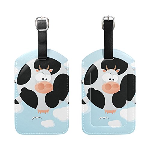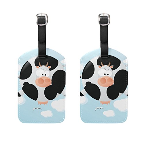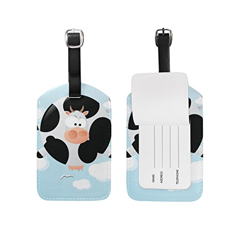(My Little Nest)/Accessories/Luggage, Bags Travel/DIRECT FROM USA/Travel Luggage Tag Funny Cute Floating Cow PU Leather Baggage Suitcase Tag Name Address ID Labe...
