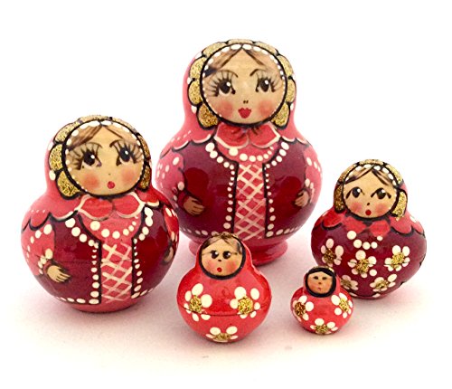 -. Feature : 5 pieces russian nesting doll,hand carved and hand painted by russian artist / size: 4 1/4" Tall, 1 1/2"Diameter, set of 5 / Made in Russia from real wood. New condition from non-smoking home / Each item is hand painted and may have slight differences in details and color. / Quick (1-2 day) handleing time. Shipping from Los Angeles, CA. Combine shipping: shipping for an each item from BuyRussianGifts store is just $0.99.