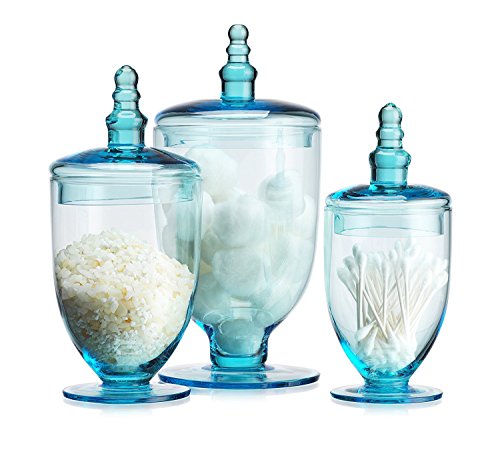 Elegant Blue Set of 3 Glass Apothecary Jars with Lid - High Glass Canister - Home Decor & Party Wedding Centerpiece Terra Collection (3 Piece Set) Designer Decorative.