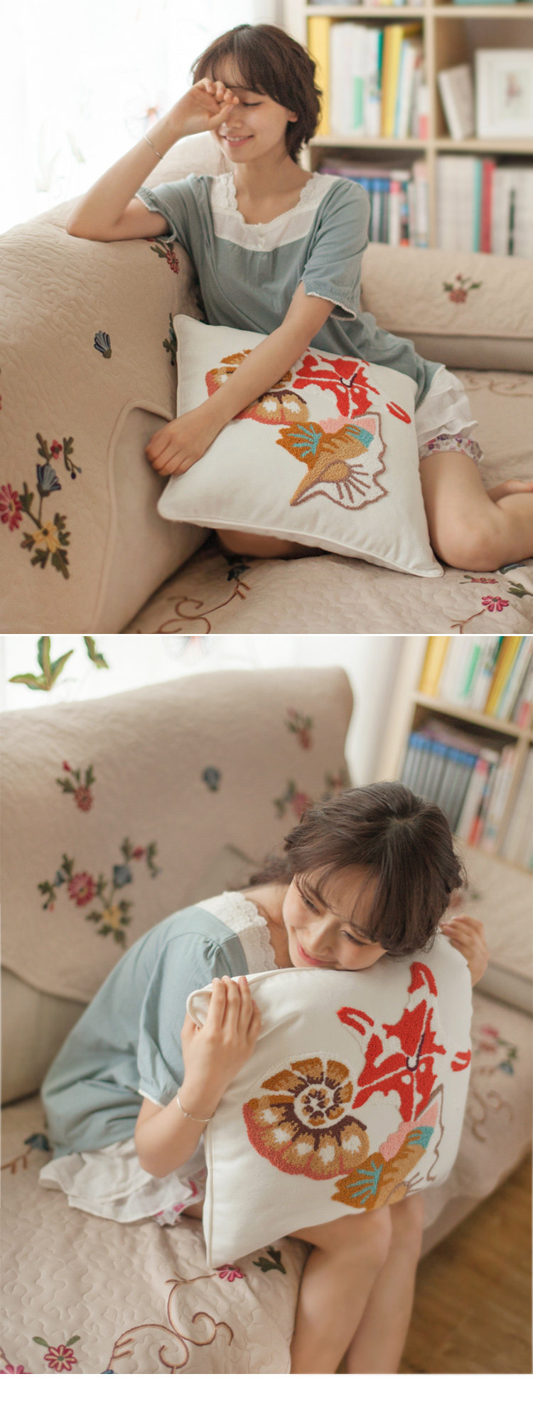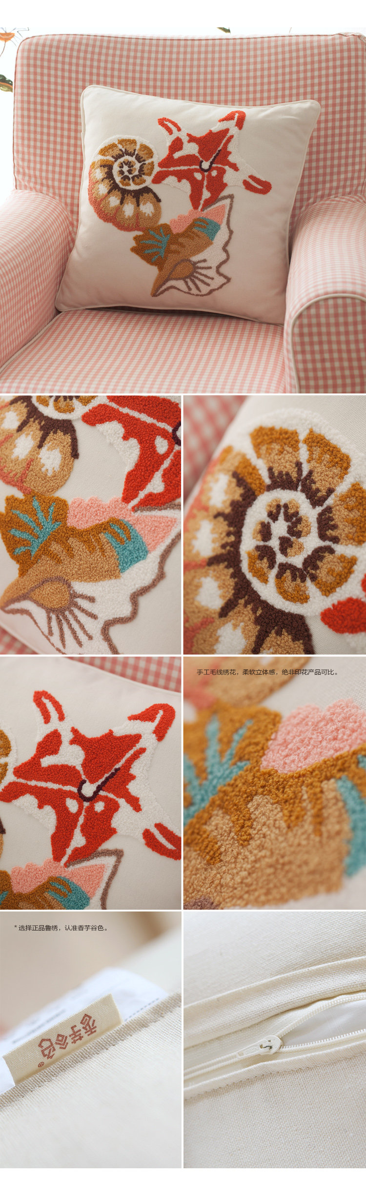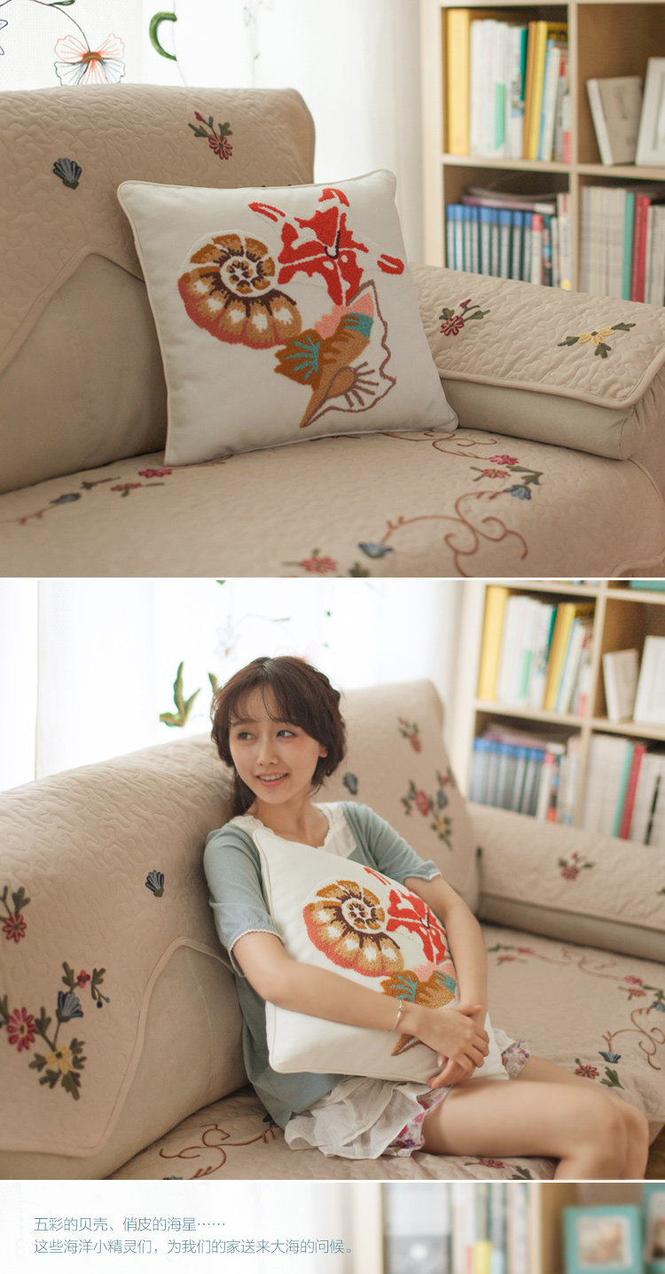 贝壳的秘密&抱枕套 45cm*45cm 纯白 89%棉+5%涤+6%麻 手工毛线刺绣