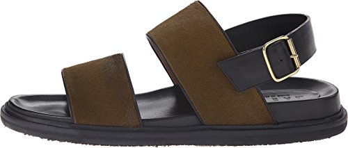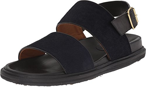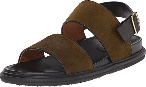 Binding : Apparel Product Description Look utterly amazing and express your individual style in the rule-breaking designs of MARNI®. Real dyed haircalf leather upper from Italy. Adjustable heel strap with buckle closure. Open toe silhouette. Leather lining and insole. Synthetic outsole. Made in Italy and Imported. This item may ship with an attached security tag. Merchandise returned without the original security tag attached or a damaged tag may not qualify for a refund. Measurements: Weight: 1 lb Product measurements were taken using size 45 (US Men's 12), width M. Please note that measurements may vary by size. 0