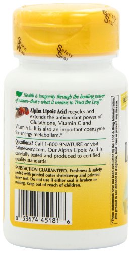 ReleaseDate : 2010-05-13 Studio : Nature's Way Publisher : Nature's Way Binding : Health and Beauty Product Description Alpha Lipoic Acid 50mg 60 CapsuleProduct Description Alpha Lipoic Acid recycles and extends the antioxidant power of Glutathione, Vitamin C and Vitamin E. Alpha Lipoic Acid is also an important coenzyme for energy metabolism.