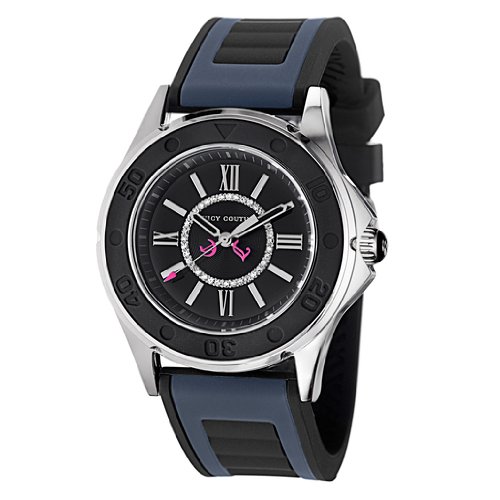 Amazon.com The Juicy Couture Women's 1900875 Rich Girl Black Jelly Strap Watch is an eye-catching timepiece with fashionable flair. Featuring a black analog dial with hot pink accents, Roman numeral hour markers, steel case, black silicone bezel and a injected black rubber band, this watch is a stylish complement to a life on the go. 0