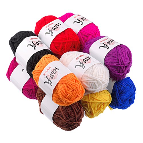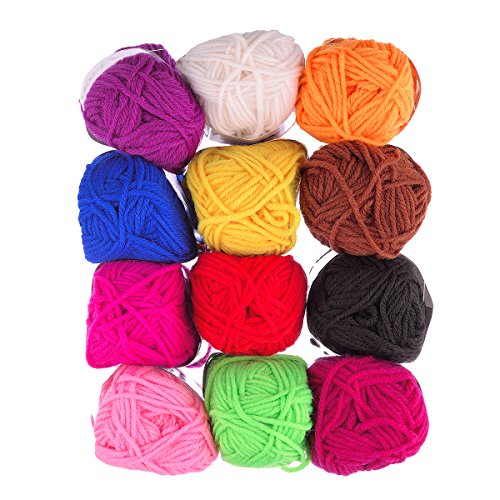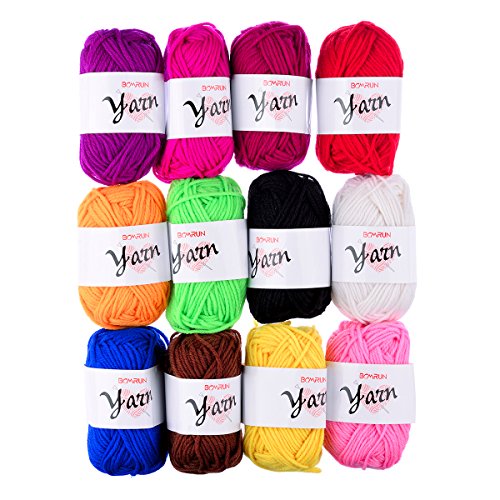 BCMRUN 12 x 25g Skeins Bonbons Yarn Assorted Colors 100% Acrylic for Crochet & Knitting Multi Pack Variety Colored Assortment (12PCS)