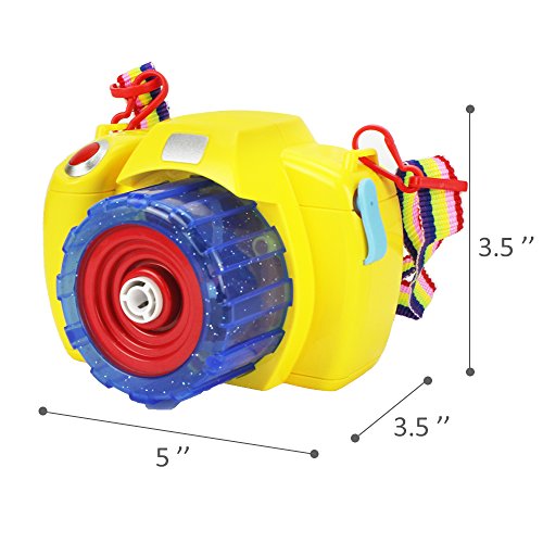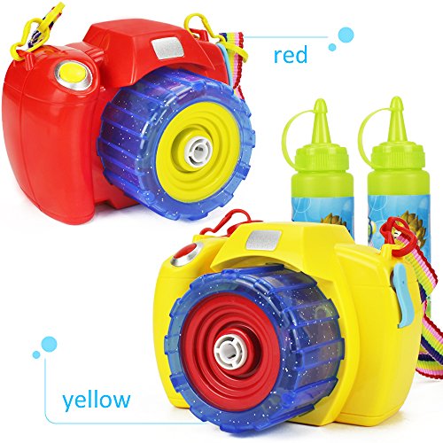 Durable - kids fun bubble shooter shaped in a camera version. Bubble blaster comes with exciting sounds and music. Set will come with two bubble solution which is easy to attach. RELIABLE QUALITY- Tested with so many quality test(EN71, ASTM F963 and CPSIA). Made by high grade material. Environmental and non-toxic. Bubbles are safe, non-toxic, and non-staining.