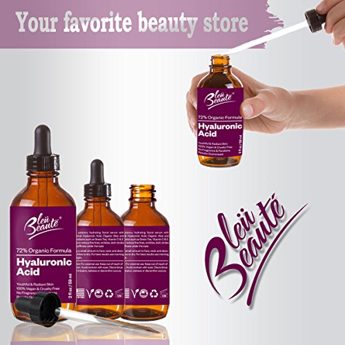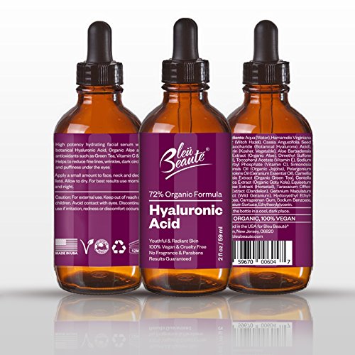 ✔ FIGHTS DRY SKIN that not only hydrate the skin but also reduce peeling skin. Bleu Beaute Hyaluronic acid with its organic component is equally efficient for oily or sensitive skin and can be worn under make up. Meets the WHOLE FOODS PREMIUM STANDARD - Made with Certified Organic ingredients (72%) and is 100% Vegan & Cruelty Free.