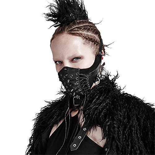 -. Brand : Punk -. Color : Black -. Department : womens -. EAN : 0715020366929 -. Feature : Material: PU Leather. / Size: One size fits all; Suitable for Most Women / 1.Front center rivet highlight the sense of cold. / 2.The main material is made of black PU leather and fake suede fabric. / 3.Non-slip two rubber.rubber can be removable,easy to wear off. -. Model : BMK006 -. PackageQuantity : 1 -. ProductGroup : Apparel -. ProductTypeName : ADULT_COSTUME -. Size : Free -. Title : Steampunk Motorcycle Biker Women Mask Winter Half Face Leather Masquerade Masks -. UPC : 715020366929