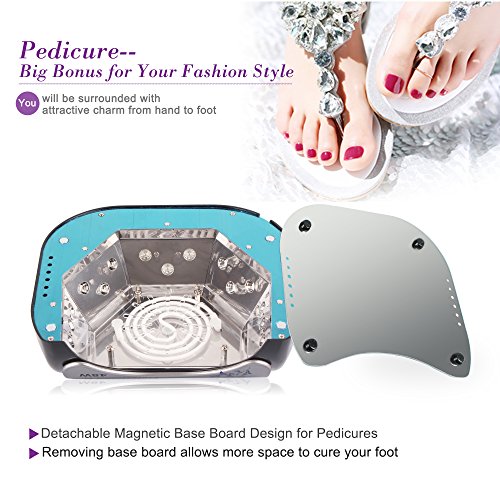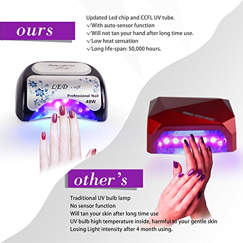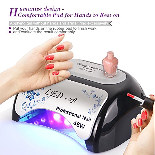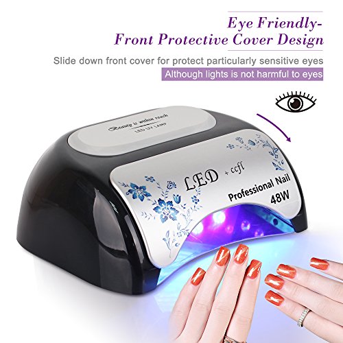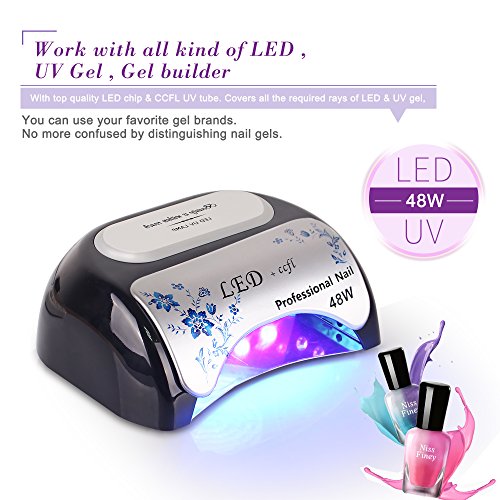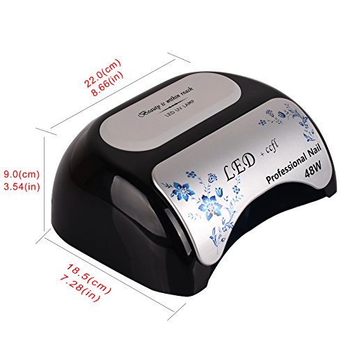 Studio : Toplanet Publisher : Toplanet Binding : Misc. Product Description Product Description:Toplanet 48W CCFL LED UV Nail Dryer Nail Lamp for Gel Polish with Automatic Sensor,Pull-down Cover and 3 Timer Settings,Black Big Improvement:?-?First-grade quality: be made of high quality materials, dry your nails quickly and efficiently, no need to change beads.-?Designed with unique flower printing, it's a visual treat and?thrilling?experience when using. -?365nm and 395nm cures almost all LED and UV gels, providing you a salon level nursing for your fingernail and toenail beauty.- 3 time modes for max convenience: 30s, 60s and 90s automatic settings, satisfy your various needs,cures gel polish faster than common lamp,?quick?and?efficient curing.- Removable magnetic bottom tray design makes it easier to clean as well as to provide enough room for a full hand or foot.- Sliding cover limits the UV radiation, protect your eyes from being hurt, no harm to your skin,friendly and comfortable. Main Features:?Type: CCFL LED UV nail lampSize: 8.7x7.3x3.6inch?Color: Black Power: 48wattRated Input: AC 100-240V Frequency: 50-60Hz Rated current: 5A? Time setting: 30s,60s?,90sWorking temperature: -4 - 122 ℉?Plug: US plug?LED Wavelength range: 365nm 395nmAny product problem,please feel free to contact us first via email,we will service you till satisfaction.Package Included:1 * Toplanet 48W Nail Lamp1 * AC/DC Adapter1 * Plug Cable(US standard 2 prong plug)1 * Product ManualNotice:?Please use this lamp within AC85-265V, lower than 85V, lamp won't light up or flicker. 0