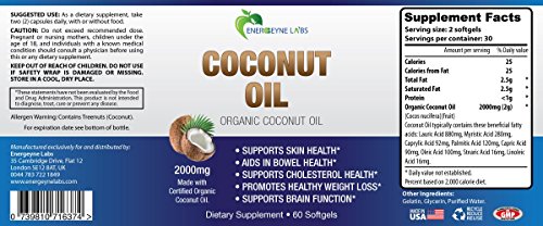 Coconut Tree Oil - 'The Tree of Life'? Coconut tree oil, 'The tree of life' as referred to in Southeast Asia, India, Philippines and other tropical locations. Coconut Oil might just be the most versatile health food on earth. Coconut oil uses are plenty, it uses extends from natural supplement, natural beauty treatments, cooking oil and much more. Benefits of Coconut Oil There has been so many studies done so far proving the health benefits of Coconut Oil. Some of it numerous benefits include: 1. Improves Metabolism*, 2. Lauric Acid to boost the body's immune system*, 3. Helps Burns Fat for weight loss*, 4. Helps Keep hair and Skin glowing/healthy*, 5. Helping to maintain healthy heart*, 6. Providing Increased Energy*, 7. Helps Improves mild memory loss associated with aging *, 8. Help Decreases Wrinkles and Age Spots*, and much more. Directions As a dietary supplement, take two (2) Softgels capsules daily, with or without food; with a glass of water or as stated by your physician. Caution Do not exceed recommended dose. Pregnant or nursing mothers, children under the age of 18, and individuals with a known medical condition should consult a physician before using this or any dietary supplement. Quality Guarantee As a family business, all our products are responsibly sourced and produced. Our Extra Virgin Coconut Oil (Organic) is made in the USA in FDA Certified facility and under GMP standards. Legal Disclaimer *These statements have not been evaluated by the Food and Drug Administration (FDA). This product is not intended to diagnose, treat, cure or prevent any disease. 0 |