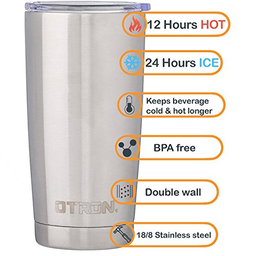 Studio : OTRON Publisher : OTRON Product Description From the Manufacturer OTRON ® Tumbler Double Wall Vacuum Insulated Stainless Steel Travel Mug Features Double wall vacuum insulation maximum temperature retention insulates hands from the cold Keeps ice longer holds ice for up to 24 hours , keeps hot longer for up to 12 hours, works great for ice drink and hot beverages 18/8 stainless steel strong stainless steel construction Sleek design fits most cup holders BPA-free. Rust-proof. Dishwasher-safe. What's in the Box OTRON Tumbler Double Wall Vacuum Insulated Stainless Steel Travel Mug, 20 oz. Limited Lifetime Warranty If this product fails due to a defect in materials or workmanship at any time during the life of the product, OTRON will replace it free of charge. This warranty does not cover products which have been abused, altered, damaged, misused, cut or worn. 0 |
