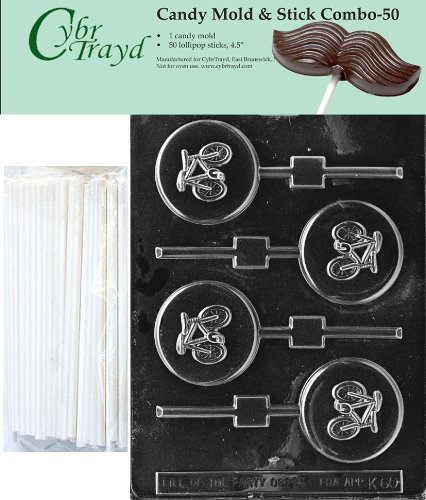 Cybrtrayd 45St50-K060 Bicycle Lolly Chocolate Candy Mold with 50 Cybrtrayd 4.5" Lollipop Sticks
