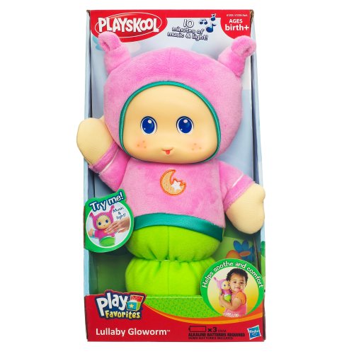 -. Binding : Toy -. Brand : Hasbro -. EAN : 0053176481951 -. Feature : Bedtime friend comforts baby / A hug from your child prompts gentle lights and lullaby tunes / 3 different modes of play - short play (light and 1 lullaby), long play (10 minutes of light and lullabies), and glow only / 6 different lullaby tunes / Includes toy -. IsAdultProduct : 0 -. ItemPartNumber : A12020000 -. Label : Playskool -. Manufacturer : Playskool -. Model : A12020000 -. MPN : A12020000 -. PackageQuantity : 1 -. PartNumber : A12020000 -. ProductGroup : Toy -. ProductTypeName : TOYS_AND_GAMES -. Publisher : Playskool -. Studio : Playskool -. Title : Playskool Play Favorites Lullaby Gloworm Toy (Pink) -. UPC : 787718807885 -. Warranty : No Warranty