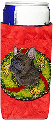 Brindle French Bulldog Cristmas Wreath Ultra Beverage Insulators for slim cans SS4206MUK