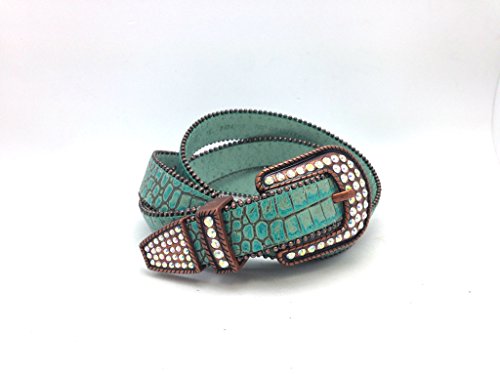 Product DescriptionTurquoise printed fashion belt with rhinestone studded belt buckle0