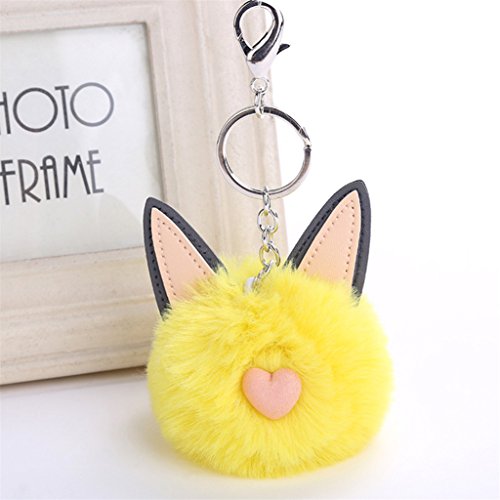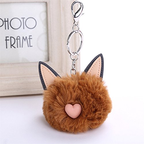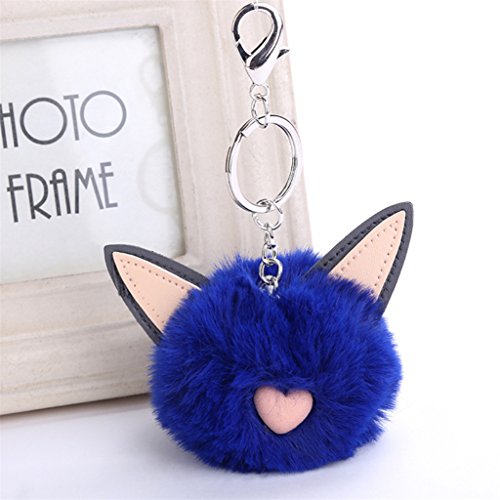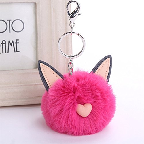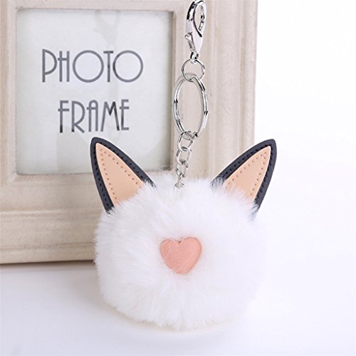 | (Meiyuan)/Accessories/Wallets, Money Key Organizers/DIRECT FROM USA/Meiyuan Cute Cat Ears Love Heart Artificial Fur Fluffy Ball Key Chain Bag Pendant Hanging Keyring |