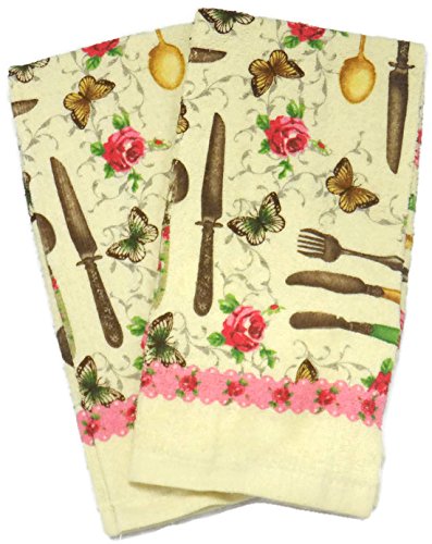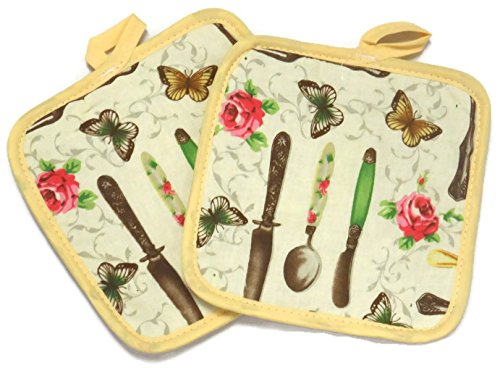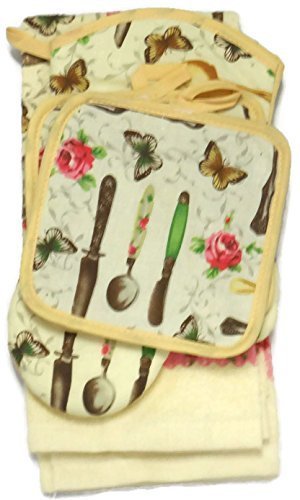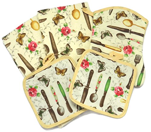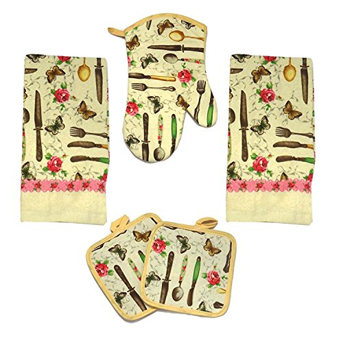 Kitchen Towel Set 5 Piece Towels Pot Holders Oven Mitt & Dishcloth Decorative Design Everyday Use (5 Piece, Spring Time)