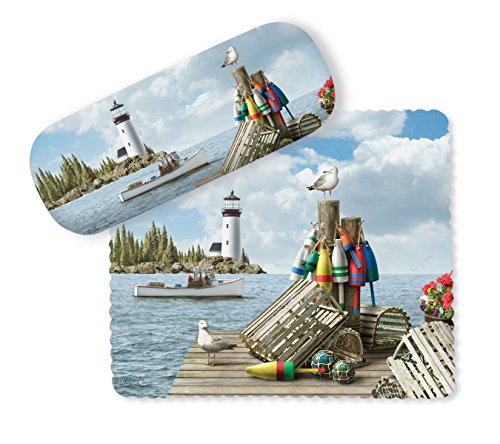 Coastal Dockside Pier Buoys Lighthouse Eye Glasses Case and Lens Cloth
