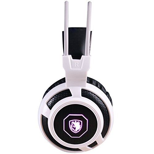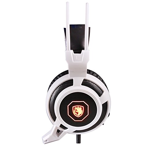 SADES SA905 USB PC Gaming Headset Headphones with Microphone Mild Vibration and LED Light (Black and White)