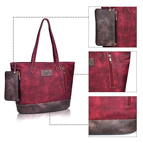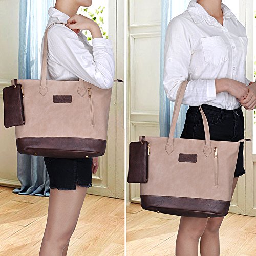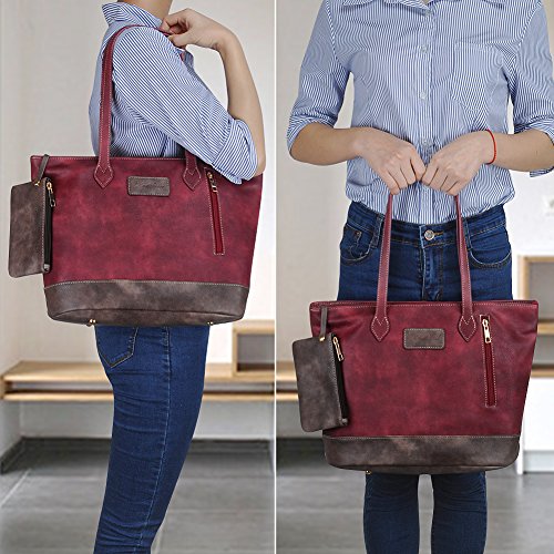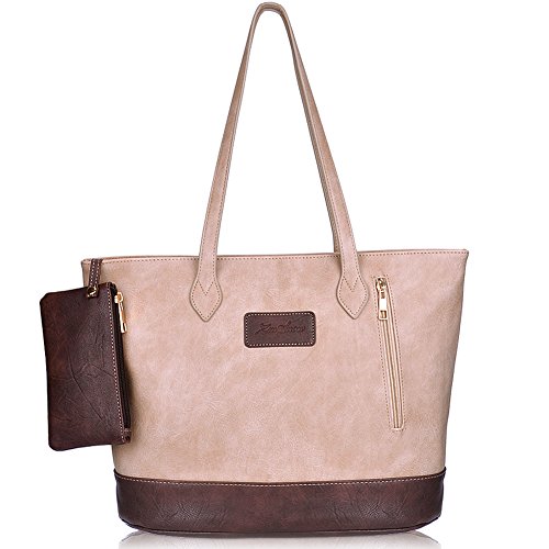 Product Description ZMSnow Womens Tote Shoulder Bag Vintage PU Leather Big Capacity Handbags Product Description Main Material:High quality PU leather with durable golden hardware and solid-colored fabric lining Product Dimensions: 13.4"L * 6.3"W * 11"H and Handle Height: 9.5" Package Includes: 1 x Handbag Product Features: 1.This modern deluxe tote bag is made of PU leather material,it is easy to clean and long lasting.Double flat shoulder handles structured shape adds this bag a stylish appearance. 2.Classic luxury design,compact and lightweight is a timeless choice for day-to-night sophistication.Perfect for using in office, school, travel or any other daily occasions. 3.Bright color for selection,black-brown, nude-brown,winered-brown,royal blue-brown.it can match various styles of dresses and shoes.Candy bright color makes you look more vigorous and brilliant! 4.Large roomy open compartment provides ample storage with quick and easy access for all of your essentials.Such as umbrella, books, mobile, wallet and other items can be placed. Maintenance Tips 1. When stained with dirt, please dip it in soapy water with a soft sponge brush and gently wipe, and dry it in shade. 2. When not use for a long term, please tightly wrap it into the bag and place in a cool and dry. 0