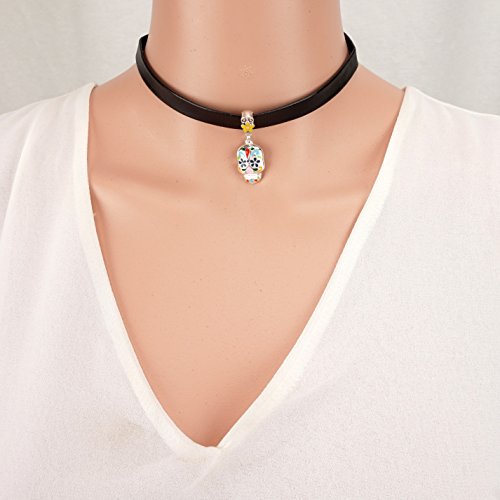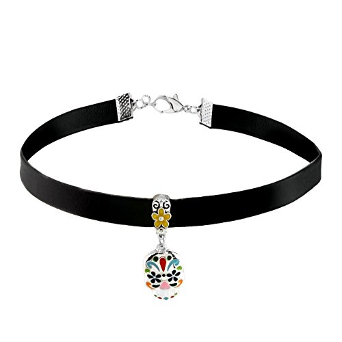 Synthetic Leather Charm Necklace Choker (Sugar Skull)