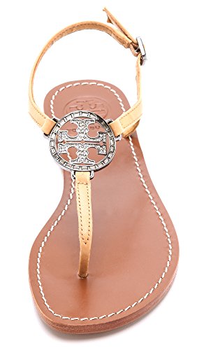 A classic T-strap silhouette gets a dose of sparkle on the Violet Metallic Thong Sandal. This minimalist style is made of mirrored leather with a pavé crystal-encrusted signature logo. Comfortable and versatile, it's great for adding a little low-key luster to summertime looks. Looks great with: Shorts and beach cover-ups Skirts and dresses, from mini to maxi Cropped, skinny and boyfriend jeans Anything you'd wear with a nude shoe - it's equally versatileFeature