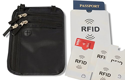 Keep Essential Documents Safe Lost luggage or stolen electronics are part of the travel experience. It's frustrating but these things are replaceable and won't entirely ruin your travels. But what are the items that you CAN'T LOSE? If you still have your passport, bank cards, boarding passes, health insurance documents, wallet, purse, phone, etc., you can keep traveling. So it makes sense to invest in a long-lasting pouch to keep them safe. But while you may keep your important documents close to your body, you could still be a victim of credit card fraud or identity theft... Thwart High-Tech Pickpockets Contactless payment is convenient but there are security risks. The tiny RFID chips in your passport, ID, and credit cards can be scanned through your pocket. That's why our product includes RFID blocking sleeves as a special bonus. This means your credit cards are surrounded by a material that interferes with radio waves used by a RFID hacker who is standing next to you on the subway. What You See Is What You Get Many companies manufacture neck wallets that don't do what they promise. Bills don't fit, and the wallet becomes bulky and conspicuous when full. Straps and zips break while abroad. With Lumous, you can be confident that you're getting a long-lasting neck wallet that performs exactly as advertised. Our Rock-Solid Guarantee We stand behind every one of our products for quality and effectiveness. If you're at all unhappy with your Neck Wallet Passport Holder With Bonus RFID Blocking Sleeves, just let us know within 30 days to receive a full refund. Invest in Peace of Mind and Enjoy Your Travels Knowing Your Can't-Lose Items are Safe. Add our Neck Wallet Passport Holder to Your Cart Today! 0