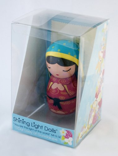 The Our Lady of Guadalupe doll is a contemporary depiction of the well known and loved image of the Virgin of Guadalupe that appeared in Mexico in 1531. The Our Lady of Guadalupe doll comes packaged in a lovely blue box perfect for gift-giving. The doll is made of high quality rotocasted vinyl; which means nothing moves, breaks, or falls off and has been safety tested and approved for children of all ages! Measuring at slightly under 3.5 inches- this little doll is a perfect fit in a child's hand, or makes an adorable figurine for a desk or nightstand. Each doll comes with a special insert containing the story of the apparition, and several prayers to the Virgin Mary. A fantastic blending of old and new, these dolls are a great way to introduce your children to the beauty and depth of the Christian faith! Shining Light Dolls are our friends for the journey, little lights to the world- for children and the young at heart! Shining Light Dolls donates 10% of all profits to charity. Safe for children, toddlers and babies of all ages- from zero to 100! A fun and faithful gift for children and adults alike! One piece; nothing to lose or break- story and prayers included! Beautiful, vivid, high quality screen printed graphics contemporary styling, traditional imagery