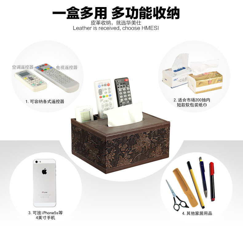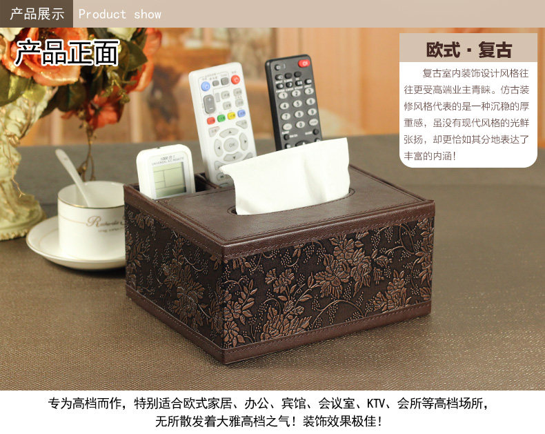 客厅创意纸巾盒 复古皮革盒餐巾抽纸桌面遥控器收纳盒
