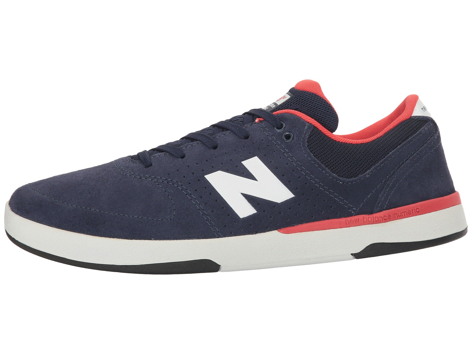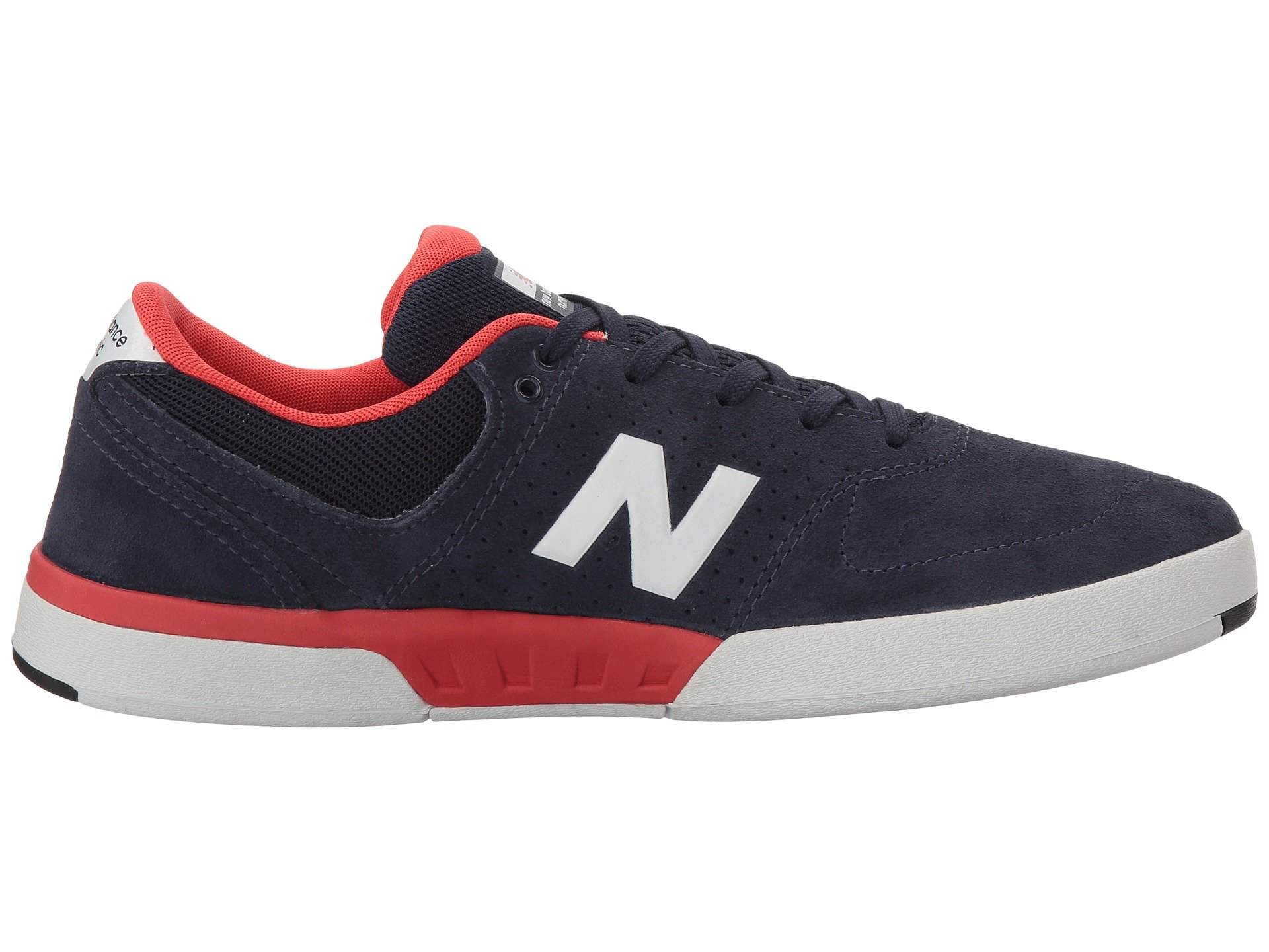 | Product Information SKU: #8845978With the rigors of pro skateboarding in mind, the battle-tested New Balance? Numeric NM533 shoe keeps your feet feeling proper for those long sessions!Please Note: NB# are performance skate shoes and have a narrow fit. We recommend ordering ½ size bigger than you do in regular NB lifestyle shoes.PJ Ladd signature model. Low-profile silhouette.Uppers of suede and breathable mesh.TPU bonded upper material for durability and performance.Laser perforations for breathability.Closed cell polyurethane (PU) insert protection provides super impact protection and consistent fit.Internal hidden toe protection for added durability.Innovative REVlite midsole provides premium responsiveness and durability at a 30% lighter weight than other foams with comparable performance.N-Durance? rubber compound for maximum outsole durability.Genuine gum rubber or N-durance? rubber outsole for superior grip and durability.Imported. Product measurements were taken using size 11.5, width D - Medium. Please note that measurements may vary by size.Weight of footwear is based on a single item, not a pair.Measurements: Weight: 14 oz |