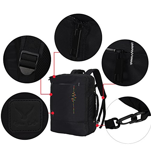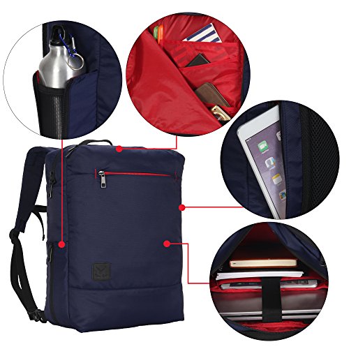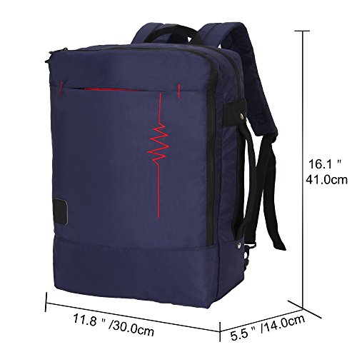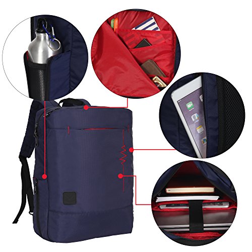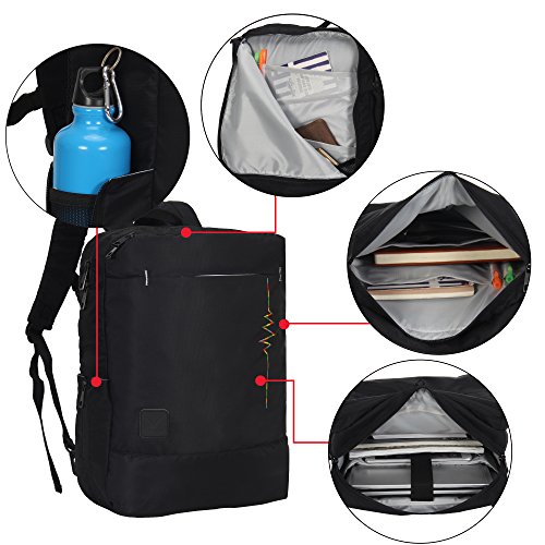 Crafted from Nylon fabric, durable and last for longer. Different from common black inside, contrasting lining makes you find things easily, taking in everything in a glance. On the main compartment, there is a well padded laptop pockets for most of the 15.6 inch laptop from major brand. Roomy space easily holds your books, clothes, shoes, and more. Front compartment features extensive or 0