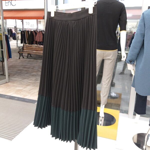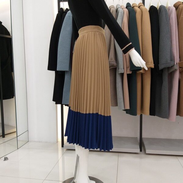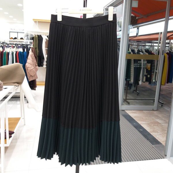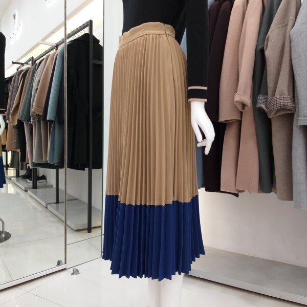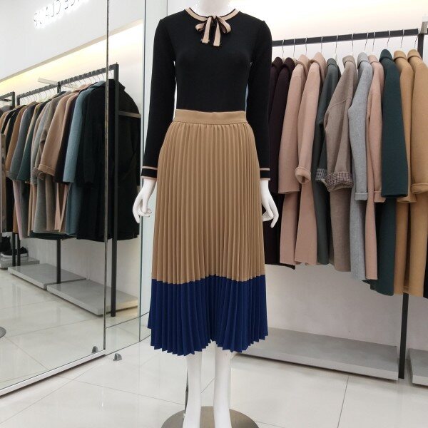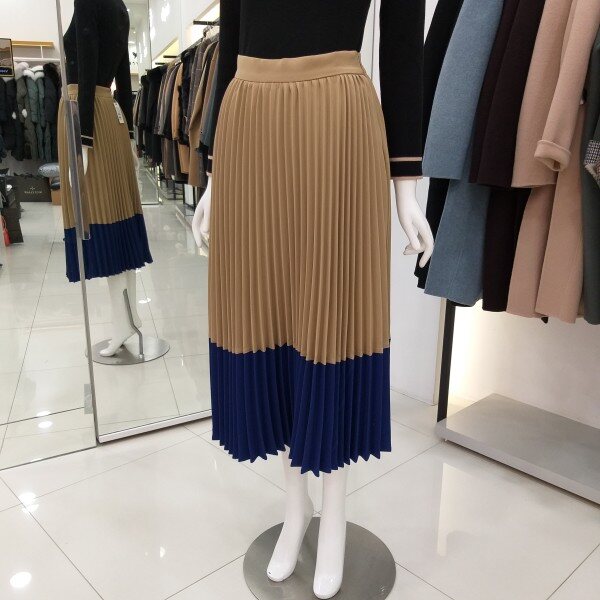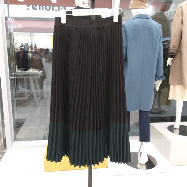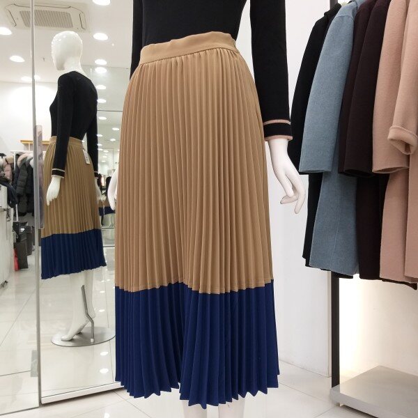 티렌 플리츠 배색 스커트입니다 잔주름에 배새이 들어간 롱 스커트로 모든아우터에 입으셔도 이쁜 스커트입니다 총장77cm입니다
