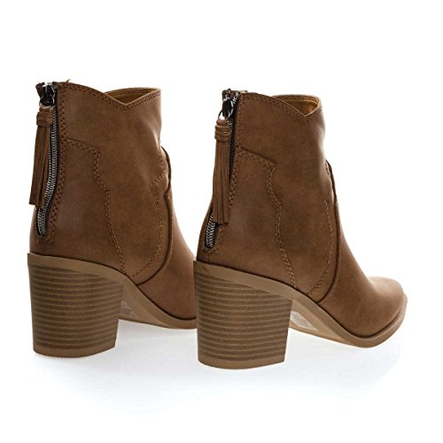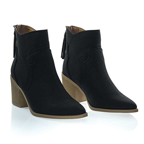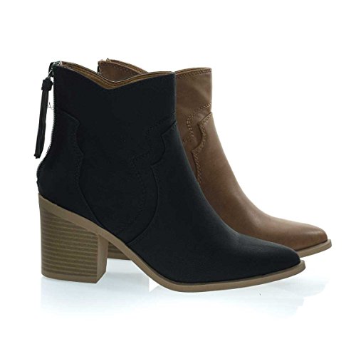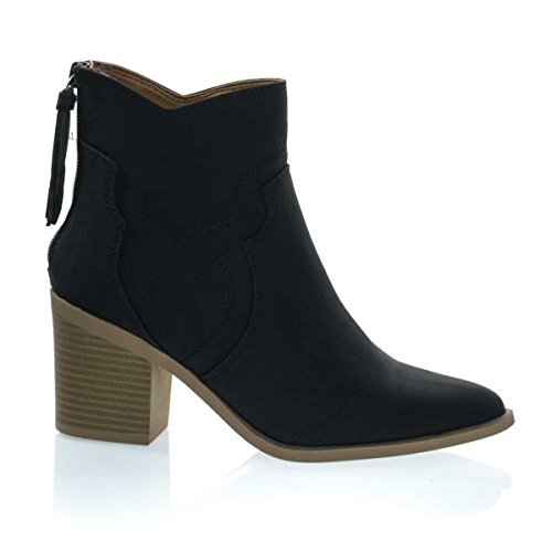 Binding : Apparel Product Description About This Shoes :These block heel booties features a western cowboy inspired silhouette, wing tip stitching, chunky block heel with faux wooden stack texture, rear zipper closure with matching tassels and pointed toe. Brand - Soda Colors Available: Black, Tan (brown) Occasion: Casual Shoe Type: Booties Shoe Style: Booties Inner Lining: synthetic Heel Height In Inches - 3 Heel Style - Block Toe Style - pointed-toe Platform Height In Inches - 0.25 Shaft Height In Inches - 5 Circumference Opening - n/a Strap Type - ankle-strap Sole - manmade All Man Made Material unless otherwise stated. Computer/Phone/Table monitors might show color differently because of its quality or calibration, we suggest you look at the photo in at least 3 monitors if you need exact color match of your shoes. 0