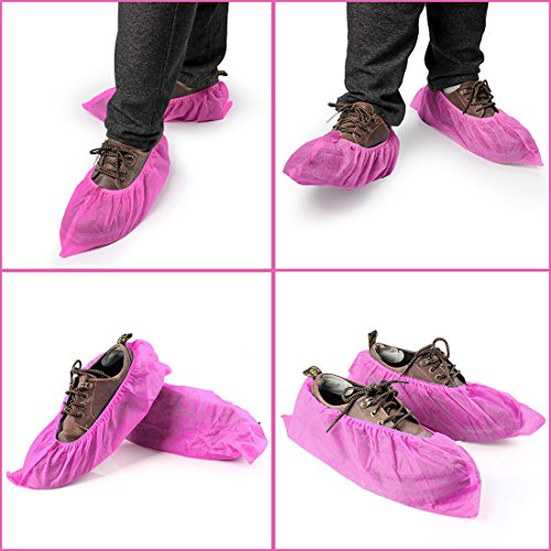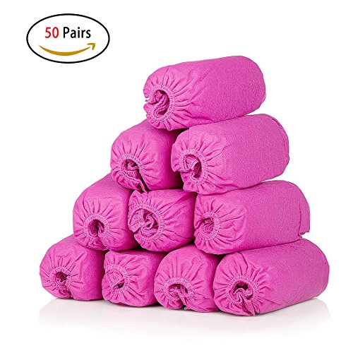 iMucci 50 Pairs Thickening Non-Woven Disposable Boot & Shoe Covers One Size Fits All Feet Pink