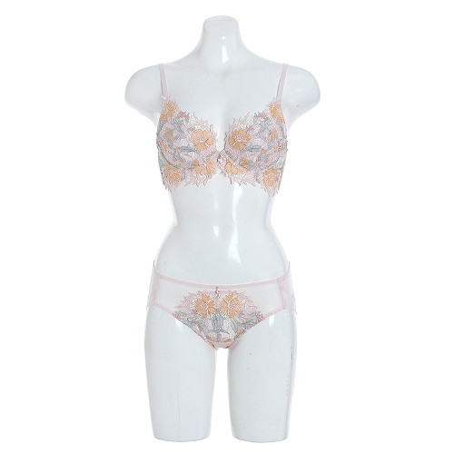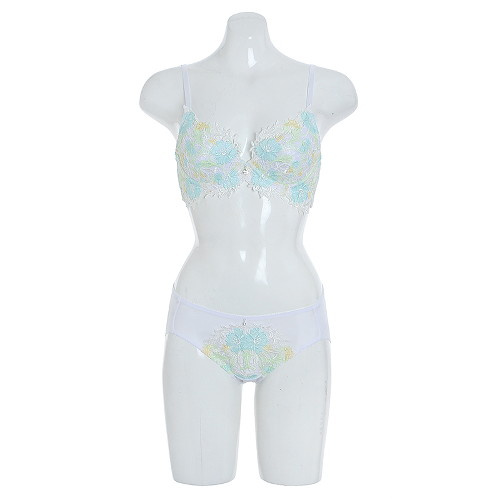 고급스러운 자수를 전면에 부착하여 화려한 브라 팬티 세트 제품 입니다