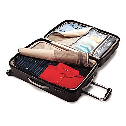 -. Feature : Hemisphere split sphere wheel, updated cushion grip handle / Flush-mounted tsa lock, more integrated carry-handles. Large number 10 zippers / Ultra sleek, protective rails near the base for extra protection. Lightweight corrugated tube handle. Integrated wet-pack pocket. Two full zip divider panel / 3 large organizational pockets inside and modesty pocket for valuables / 25.6x17.3x12.3 / Four multi-directional split spherical spinner wheels for easy mobility. Rolls upright so there is no weight on your arm or shoulder / Fully-featured interiors with wetpak, mesh and modesty pockets for increased organization / Full-zip, compression panels keep clothes neatly packed while traveling / Flush-mounted travel sentry combination lock provides additional peace of mind when checking belongings / Textured TPR coated, gel-infused, push-button locking handle provides a comfortable GRip